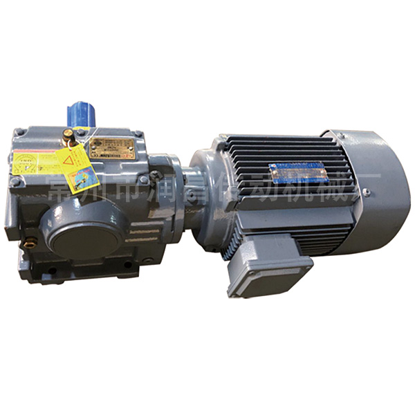 产品概述:1、S系列斜齿轮蜗杆减速机具有很高的科技含量,有斜齿轮与蜗轮蜗杆结合一体传动,提高该机力矩与效率。该系列产品规格齐全,转速范围广,通用性好,适应各种安装方式,性能安全可靠寿命长,实施了国际标准要求。 2、机体表面凹凸具有散热作用,吸振强,低温升,低噪音。3、该机密封性能好,对工作环境适应性强。4、该机传动精度高,特别适应在有频繁启动的场合工作,可连接各类减速器及配置各类型电机驱动,可安装在90度传动操作位置。5、该减速电机关键零部件采用了高耐磨材料,并经过特种热处理,具有加工精度高,传动平稳、体积小承载能力大、寿命长等特点。6、该减速机可配置各种类电机,形成了机电一体化,完全保证了产品使用质量特征。技术参数:功 率:0.18KW~22KW转 矩:10N·m~4890N·m输出转速:0.12~397r/min