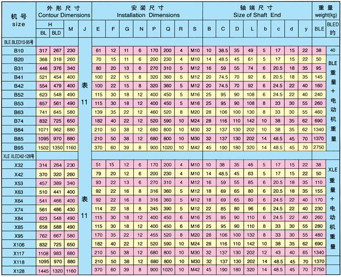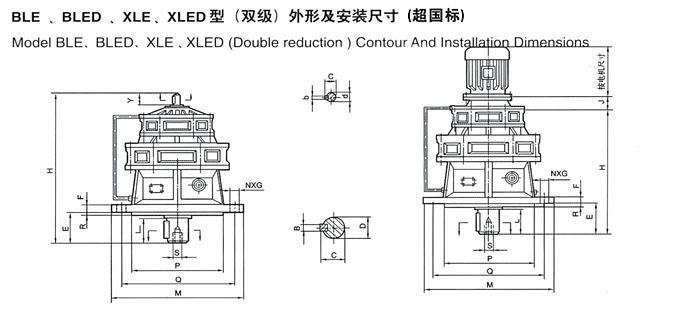 >> BLE、BLED、XLE、XLED型(双级)外形及安装尺寸